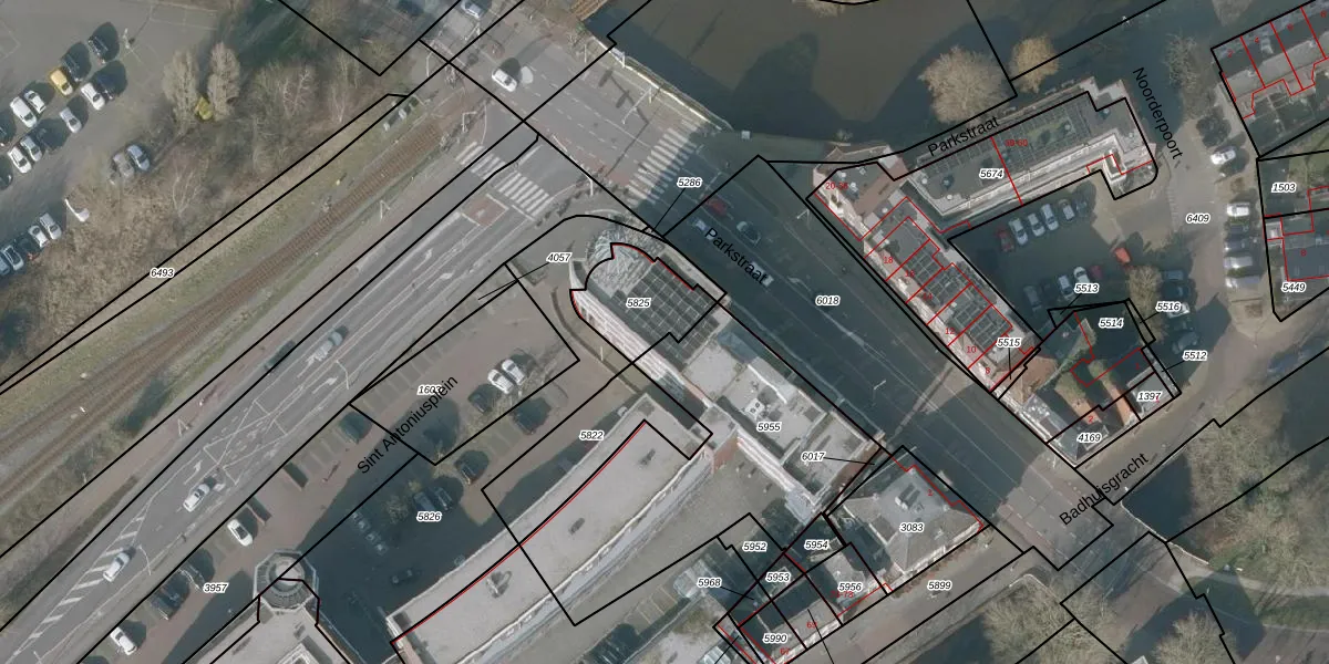 Sint Antoniusplein 25 is gelegen op kadastraal perceel SNE00A5825. Deze kadastrale aanduiding is uniek en wordt gebruikt door het Kadaster om eigendomsrechten en andere zakelijke rechten vast te leggen. Het perceel maakt onderdeel uit van de kadastrale gemeente Sneek.