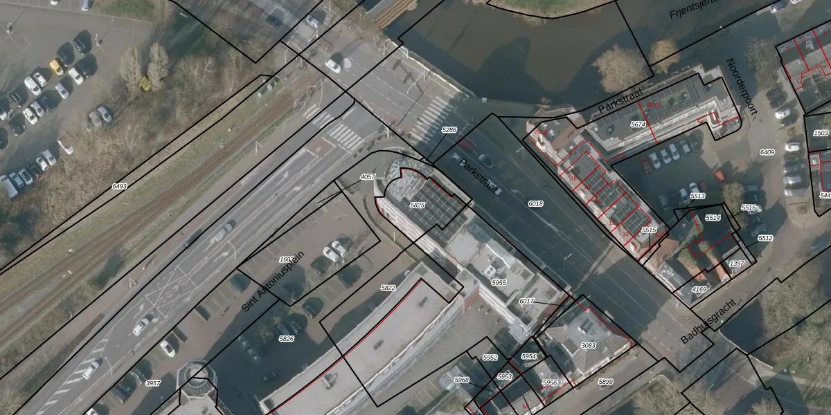 Het perceel waarop het adres ligt is SNE00-A-5825. De afkorting 'SNE00' staat voor kadastrale gemeente Sneek. Het perceel is kleiner dan gemiddeld in Sneek. Het perceel is 218 m² groot, terwijl het gemiddelde ligt op 2095,04 m². De grootste perceeloppervlakte in de kadastrale gemeente is 61,3 ha. De kleinste oppervlakte bedraagt 0 m². Er zijn 4 adressen aanwezig op het perceel. De huidige grenzen van het perceel zijn digitaal in de Basisregistratie Kadaster (BRK) geregistreerd op 03-05-2002.