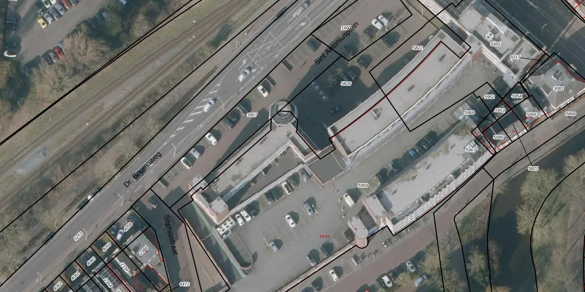 Sint Antoniusplein 37 is gelegen op kadastraal perceel SNE00A5959. Deze kadastrale aanduiding is uniek en wordt gebruikt door het Kadaster om eigendomsrechten en andere zakelijke rechten vast te leggen. Het perceel maakt onderdeel uit van de kadastrale gemeente Sneek.
