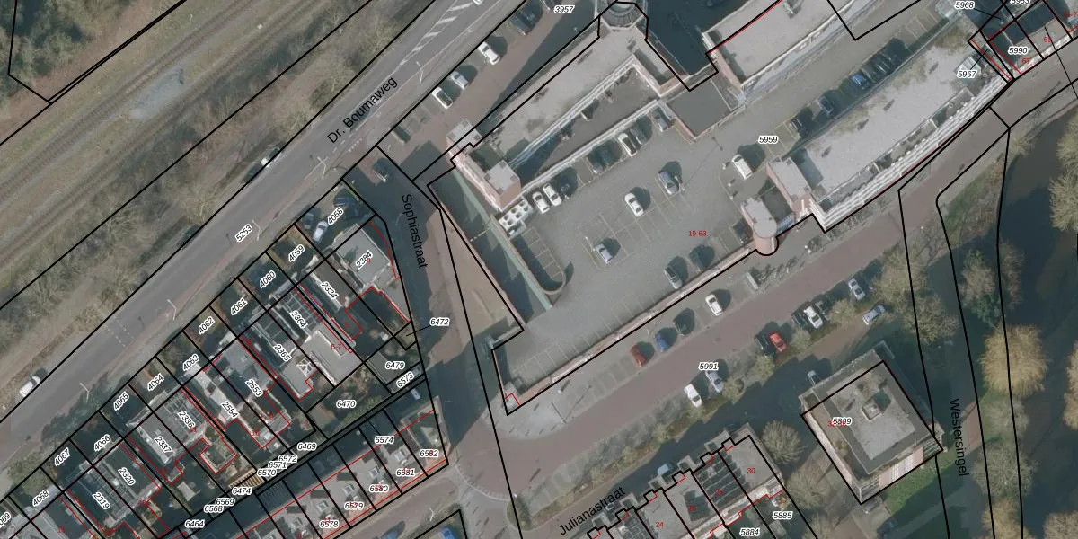 Het perceel waarop het adres ligt is SNE00-A-5959. De afkorting 'SNE00' staat voor kadastrale gemeente Sneek. De gemiddelde perceeloppervlakte in de kadastrale gemeente Sneek is 2095,17 m². Dit perceel is met zijn 4155 m² dus groter dan gemiddeld. De grootste perceeloppervlakte in de kadastrale gemeente is 61,3 ha. De kleinste oppervlakte bedraagt 0 m². Op het perceel zijn 37 adressen aanwezig. De laatste wijziging in het de Basisregistratie Kadaster (BRK) was op 20-06-2003.
