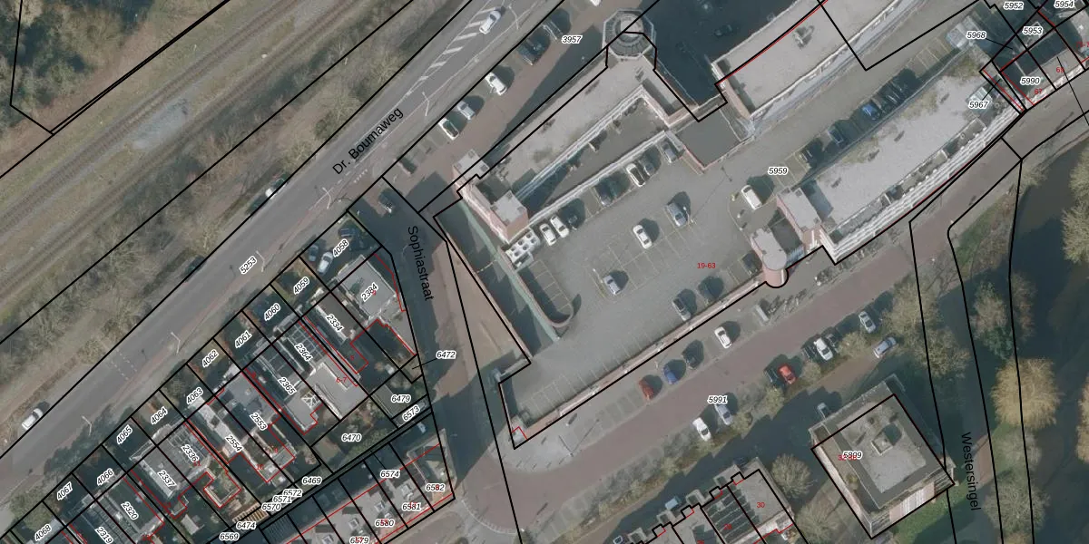 Het perceel waarop het adres ligt is SNE00-A-5959. De afkorting 'SNE00' staat voor kadastrale gemeente Sneek. De gemiddelde perceeloppervlakte in de kadastrale gemeente Sneek is 2095,17 m². Dit perceel is met zijn 4155 m² dus groter dan gemiddeld. De grootste perceeloppervlakte in de kadastrale gemeente is 61,3 ha. De kleinste oppervlakte bedraagt 0 m². Op het perceel zijn 37 adressen aanwezig. De laatste wijziging in het de Basisregistratie Kadaster (BRK) was op 20-06-2003.