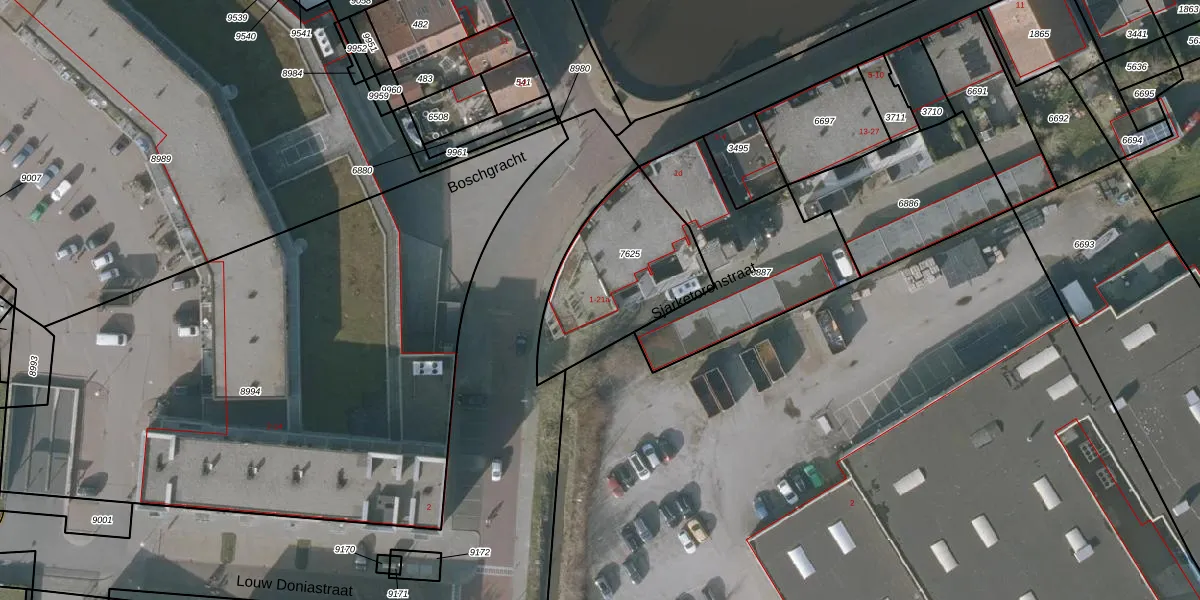Het adres is gelegen op perceel 7625 in de sectie C en de kadastrale gemeente Sneek. De kadastrale aanduiding is aldus SNE00-C-7625. De gemiddelde perceelgrootte in Sneek is 2093,49 m². Dit perceel is kleiner: de perceeloppervlakte bedraagt 556 m². Het grootste perceel in de kadastrale gemeente is 61,3 ha. Het kleinste perceel heeft een oppervlakte van 0 m². Op het perceel liggen in totaal 8 adressen. De huidige grenzen van het perceel zijn digitaal in de Basisregistratie Kadaster (BRK) geregistreerd op 12-01-2011.
