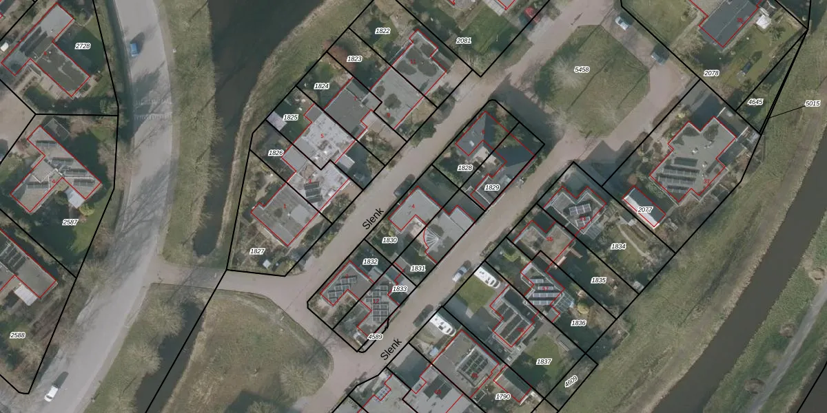 Slenk 4 is gelegen op kadastraal perceel SNE00D1830. Deze kadastrale aanduiding is uniek en wordt gebruikt door het Kadaster om eigendomsrechten en andere zakelijke rechten vast te leggen. Het perceel maakt onderdeel uit van de kadastrale gemeente Sneek.
