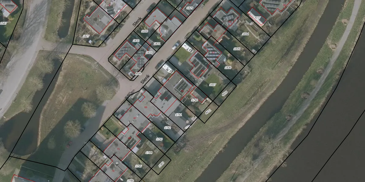 Het perceel waarop Slenk 61 staat heeft een oppervlakte van 404 m². Dit is een groot perceel. De perceeloppervlakte wordt geregistreerd door het Kadaster. Gedetailleerde informatie over de maten van dit perceel kunt u vinden in het rapport Kadastrale kaart met maatvoering van Slenk 61.