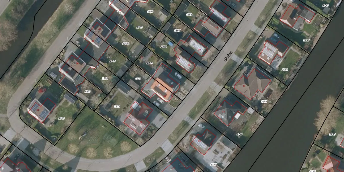 Slufter 24 is gelegen op kadastraal perceel SNE00E1869. Deze kadastrale aanduiding is uniek en wordt gebruikt door het Kadaster om eigendomsrechten en andere zakelijke rechten vast te leggen. Het perceel maakt onderdeel uit van de kadastrale gemeente Sneek.