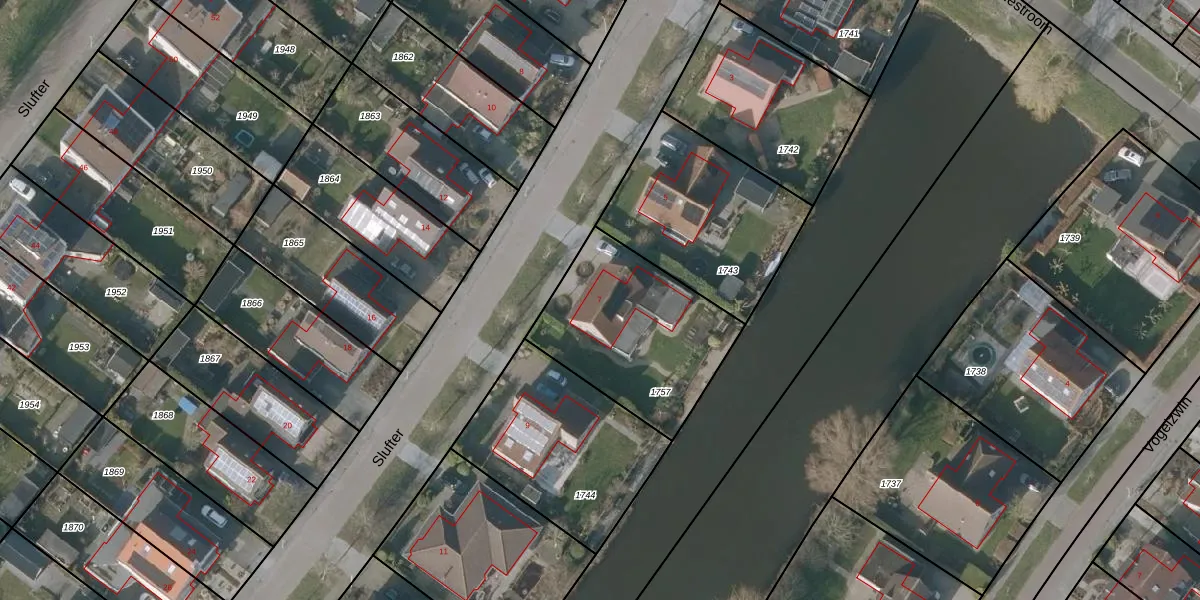 Slufter 7 is gelegen op kadastraal perceel SNE00E1757. Deze kadastrale aanduiding is uniek en wordt gebruikt door het Kadaster om eigendomsrechten en andere zakelijke rechten vast te leggen. Het perceel maakt onderdeel uit van de kadastrale gemeente Sneek.