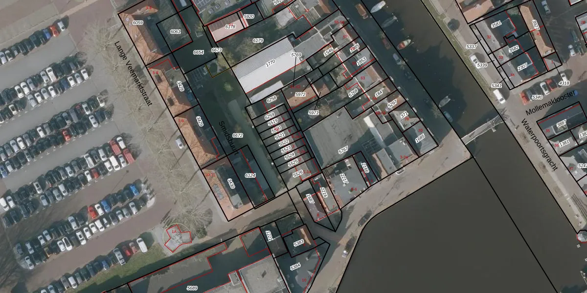 Het perceel waarop Smidsbuurt 3 staat heeft een oppervlakte van 43 m². Dit is een klein perceel. De perceeloppervlakte wordt geregistreerd door het Kadaster. Gedetailleerde informatie over de maten van dit perceel kunt u vinden in het rapport Kadastrale kaart met maatvoering van Smidsbuurt 3.