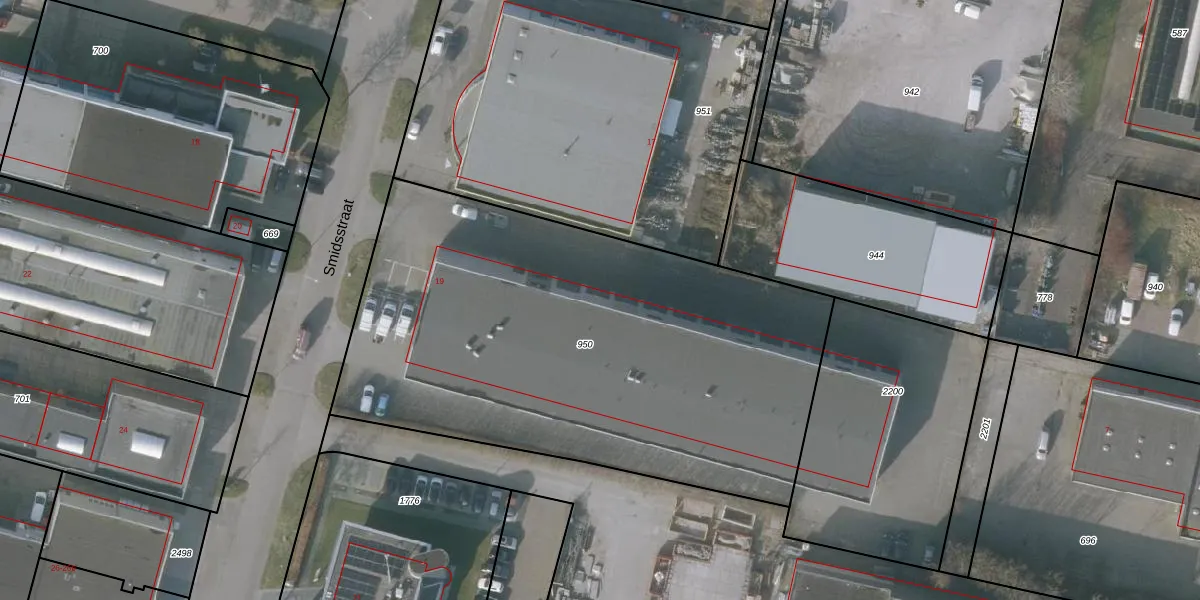 Het perceel waarop Smidsstraat 19-003 staat heeft een oppervlakte van 2931 m². Dit is een zeer groot perceel. De perceeloppervlakte wordt geregistreerd door het Kadaster. Gedetailleerde informatie over de maten van dit perceel kunt u vinden in het rapport Kadastrale kaart met maatvoering van Smidsstraat 19-003.