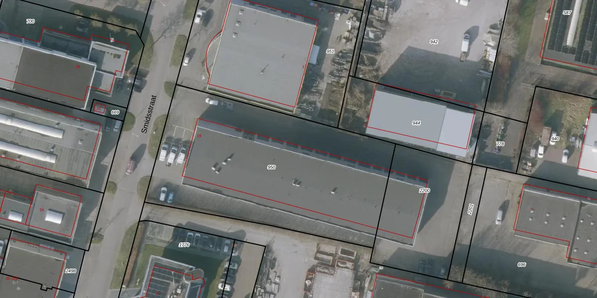 Het perceel waarop Smidsstraat 19-004 staat heeft een oppervlakte van 2931 m². Dit is een zeer groot perceel. De perceeloppervlakte wordt geregistreerd door het Kadaster. Gedetailleerde informatie over de maten van dit perceel kunt u vinden in het rapport Kadastrale kaart met maatvoering van Smidsstraat 19-004.