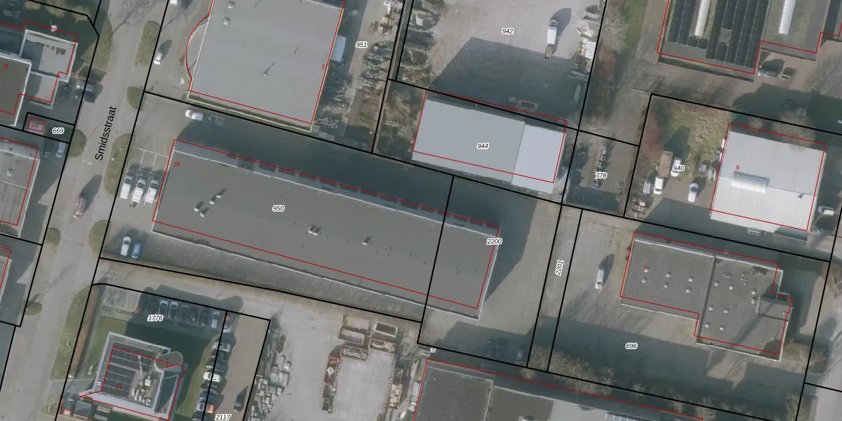Het perceel waarop Smidsstraat 19-009 staat heeft een oppervlakte van 2931 m². Dit is een zeer groot perceel. De perceeloppervlakte wordt geregistreerd door het Kadaster. Gedetailleerde informatie over de maten van dit perceel kunt u vinden in het rapport Kadastrale kaart met maatvoering van Smidsstraat 19-009.