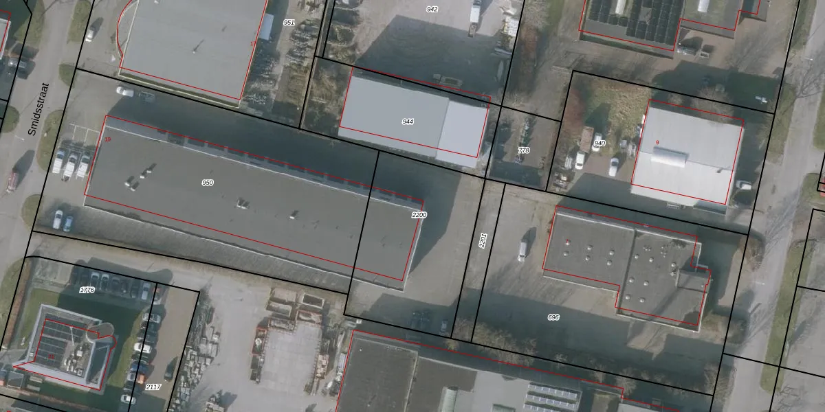 Het perceel waarop Smidsstraat 19-014 staat heeft een oppervlakte van 1070 m². Dit is een zeer groot perceel. De perceeloppervlakte wordt geregistreerd door het Kadaster. Gedetailleerde informatie over de maten van dit perceel kunt u vinden in het rapport Kadastrale kaart met maatvoering van Smidsstraat 19-014.