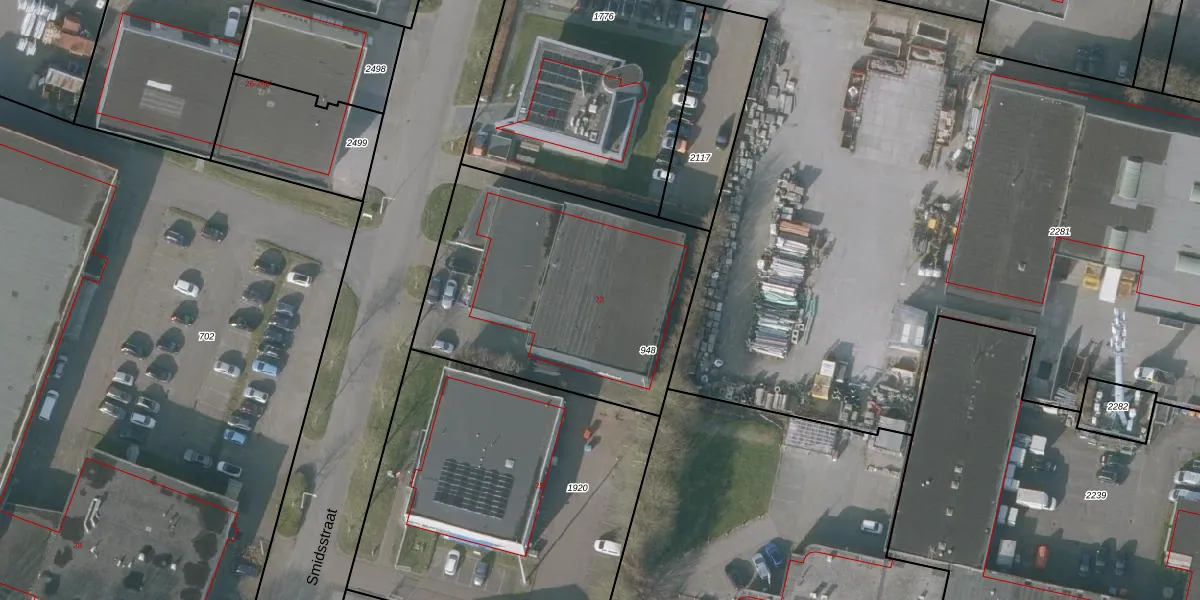 Het perceel waarop Smidsstraat 23 staat heeft een oppervlakte van 1375 m². Dit is een zeer groot perceel. De perceeloppervlakte wordt geregistreerd door het Kadaster. Gedetailleerde informatie over de maten van dit perceel kunt u vinden in het rapport Kadastrale kaart met maatvoering van Smidsstraat 23.