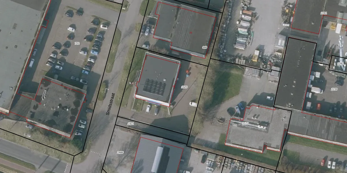 Het perceel waarop Smidsstraat 25 staat heeft een oppervlakte van 1784 m². Dit is een zeer groot perceel. De perceeloppervlakte wordt geregistreerd door het Kadaster. Gedetailleerde informatie over de maten van dit perceel kunt u vinden in het rapport Kadastrale kaart met maatvoering van Smidsstraat 25.