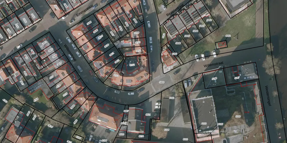 Het perceel waarop het adres ligt is SNE00-A-3712. De afkorting 'SNE00' staat voor kadastrale gemeente Sneek. Het perceel is 408 m² groot. Dat is kleiner dan de gemiddelde perceeloppervlakte in Sneek, dat op 2093,37 m² ligt. De grootste perceeloppervlakte in de kadastrale gemeente is 61,3 ha. De kleinste oppervlakte bedraagt 0 m². Op het perceel zijn 10 adressen aanwezig. De huidige grenzen van het perceel zijn digitaal in de Basisregistratie Kadaster (BRK) geregistreerd op 21-12-2000.