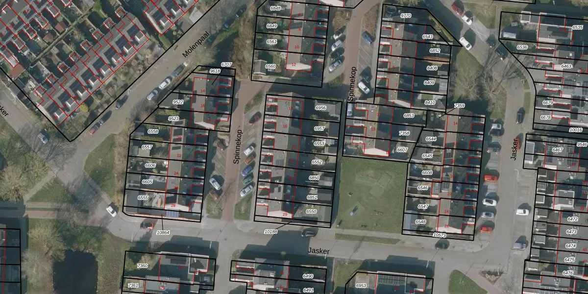 Spinnekop 21 is gelegen op kadastraal perceel SNE00C6553. Deze kadastrale aanduiding is uniek en wordt gebruikt door het Kadaster om eigendomsrechten en andere zakelijke rechten vast te leggen. Het perceel maakt onderdeel uit van de kadastrale gemeente Sneek.