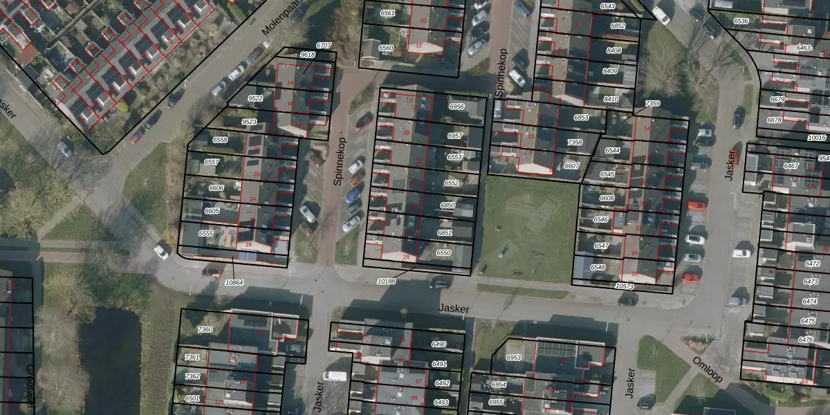 Spinnekop 25 is gelegen op kadastraal perceel SNE00C6850. Deze kadastrale aanduiding is uniek en wordt gebruikt door het Kadaster om eigendomsrechten en andere zakelijke rechten vast te leggen. Het perceel maakt onderdeel uit van de kadastrale gemeente Sneek.