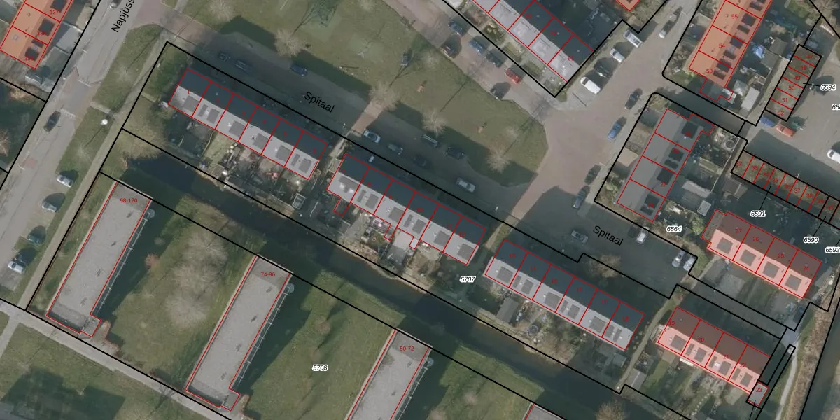Spitaal 10 is gelegen op kadastraal perceel SNE00A5707. Deze kadastrale aanduiding is uniek en wordt gebruikt door het Kadaster om eigendomsrechten en andere zakelijke rechten vast te leggen. Het perceel maakt onderdeel uit van de kadastrale gemeente Sneek.