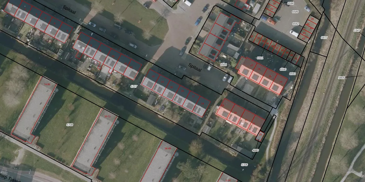 Spitaal 16 is gelegen op kadastraal perceel SNE00A5707. Deze kadastrale aanduiding is uniek en wordt gebruikt door het Kadaster om eigendomsrechten en andere zakelijke rechten vast te leggen. Het perceel maakt onderdeel uit van de kadastrale gemeente Sneek.