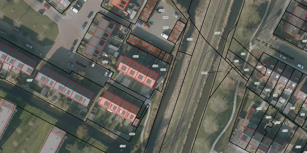 Het perceel waarop Spitaal 24 staat heeft een oppervlakte van 1630 m². Dit is een zeer groot perceel. De perceeloppervlakte wordt geregistreerd door het Kadaster. Gedetailleerde informatie over de maten van dit perceel kunt u vinden in het rapport Kadastrale kaart met maatvoering van Spitaal 24.