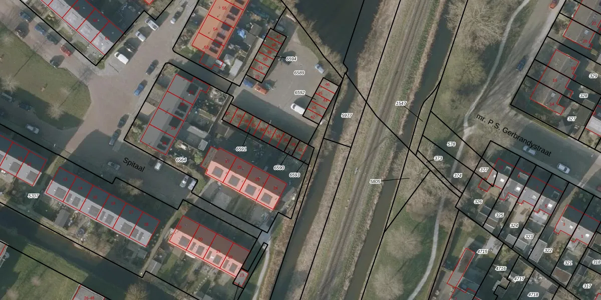 Spitaal 41 is gelegen op kadastraal perceel SNE00A6593. Deze kadastrale aanduiding is uniek en wordt gebruikt door het Kadaster om eigendomsrechten en andere zakelijke rechten vast te leggen. Het perceel maakt onderdeel uit van de kadastrale gemeente Sneek.