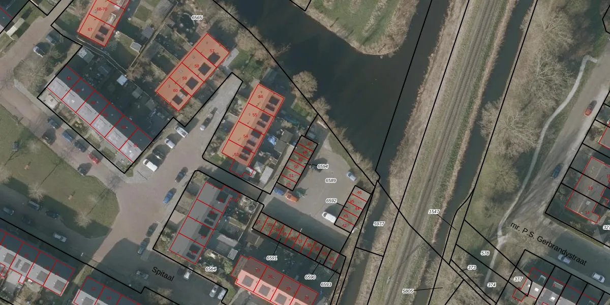 Spitaal 48 is gelegen op kadastraal perceel SNE00A6594. Deze kadastrale aanduiding is uniek en wordt gebruikt door het Kadaster om eigendomsrechten en andere zakelijke rechten vast te leggen. Het perceel maakt onderdeel uit van de kadastrale gemeente Sneek.