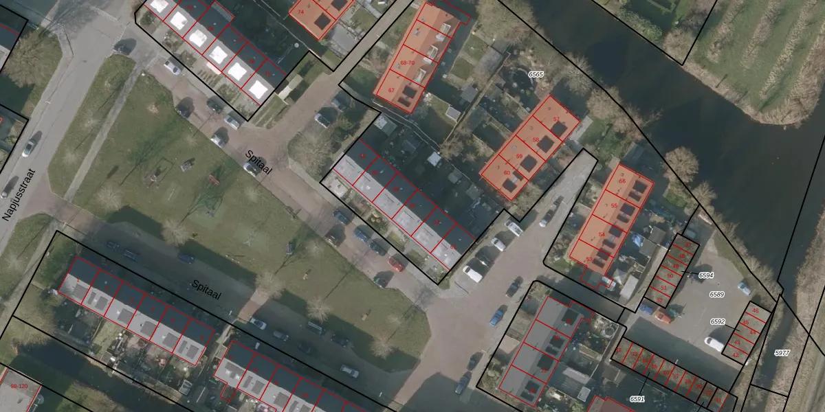 Spitaal 63 is gelegen op kadastraal perceel SNE00A6565. Deze kadastrale aanduiding is uniek en wordt gebruikt door het Kadaster om eigendomsrechten en andere zakelijke rechten vast te leggen. Het perceel maakt onderdeel uit van de kadastrale gemeente Sneek.