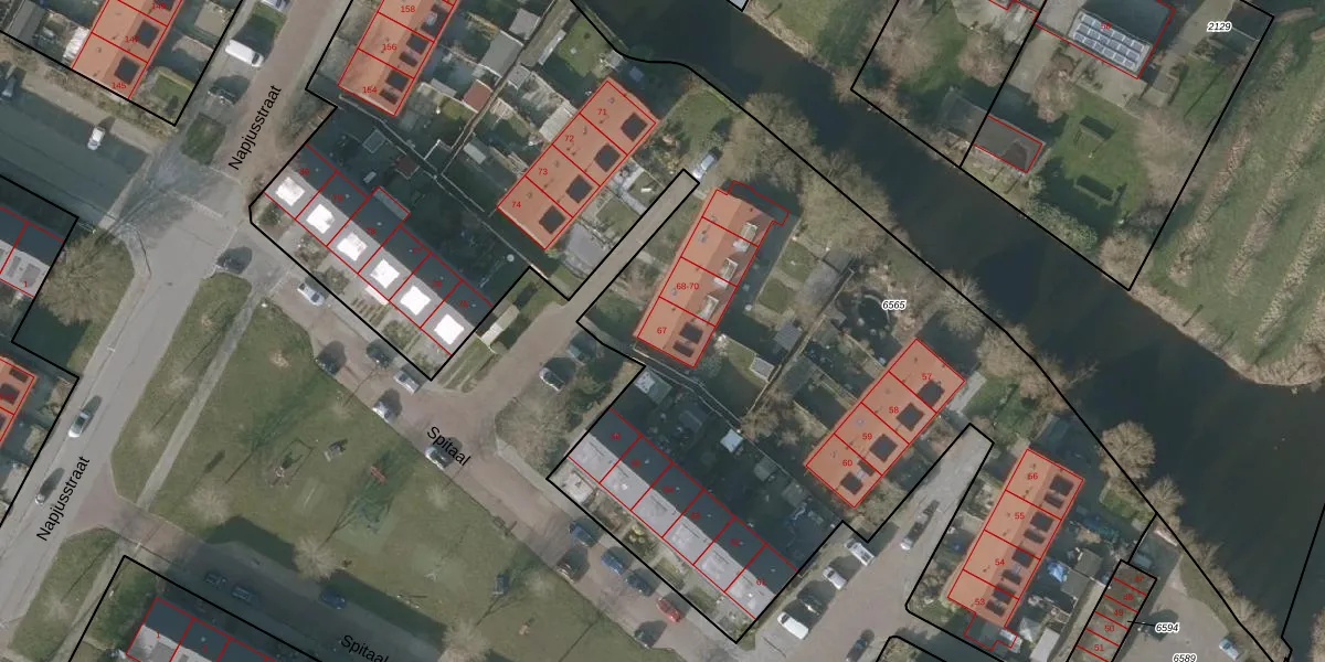 Spitaal 67 is gelegen op kadastraal perceel SNE00A6565. Deze kadastrale aanduiding is uniek en wordt gebruikt door het Kadaster om eigendomsrechten en andere zakelijke rechten vast te leggen. Het perceel maakt onderdeel uit van de kadastrale gemeente Sneek.