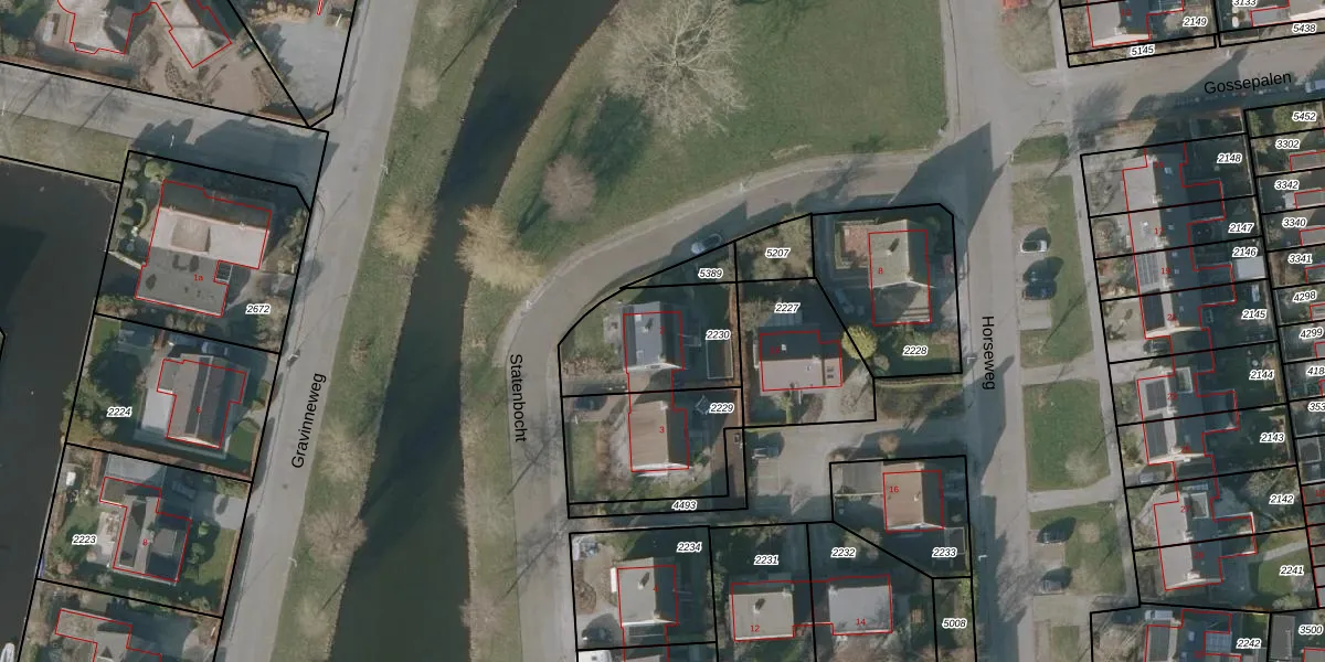 Het perceel waarop Statenbocht 2 staat heeft een oppervlakte van 399 m². Dit is een groot perceel. De perceeloppervlakte wordt geregistreerd door het Kadaster. Gedetailleerde informatie over de maten van dit perceel kunt u vinden in het rapport Kadastrale kaart met maatvoering van Statenbocht 2.