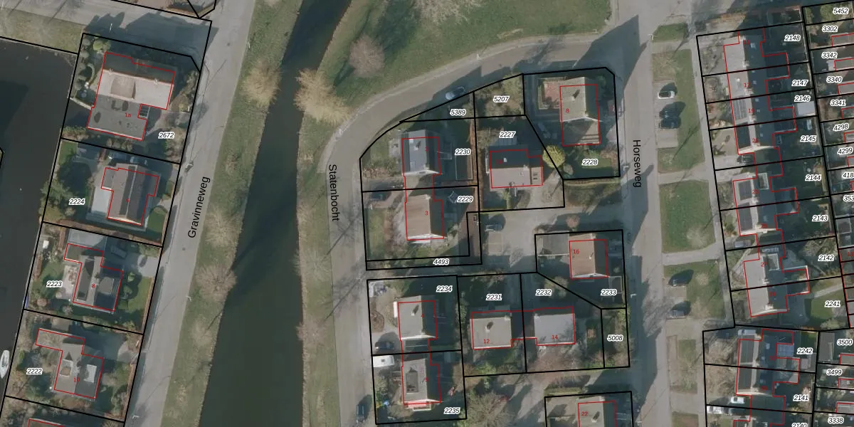 Gebruik de zoekbalk of klik op een perceel voor informatie over de adressen binnen dit perceel.