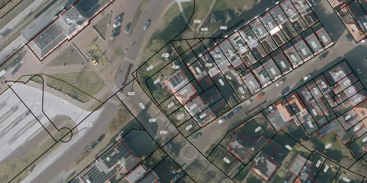 Het perceel waarop Stationsstraat 25-A staat heeft een oppervlakte van 120 m². Dit is een middelgroot perceel. De perceeloppervlakte wordt geregistreerd door het Kadaster. Gedetailleerde informatie over de maten van dit perceel kunt u vinden in het rapport Kadastrale kaart met maatvoering van Stationsstraat 25-A.