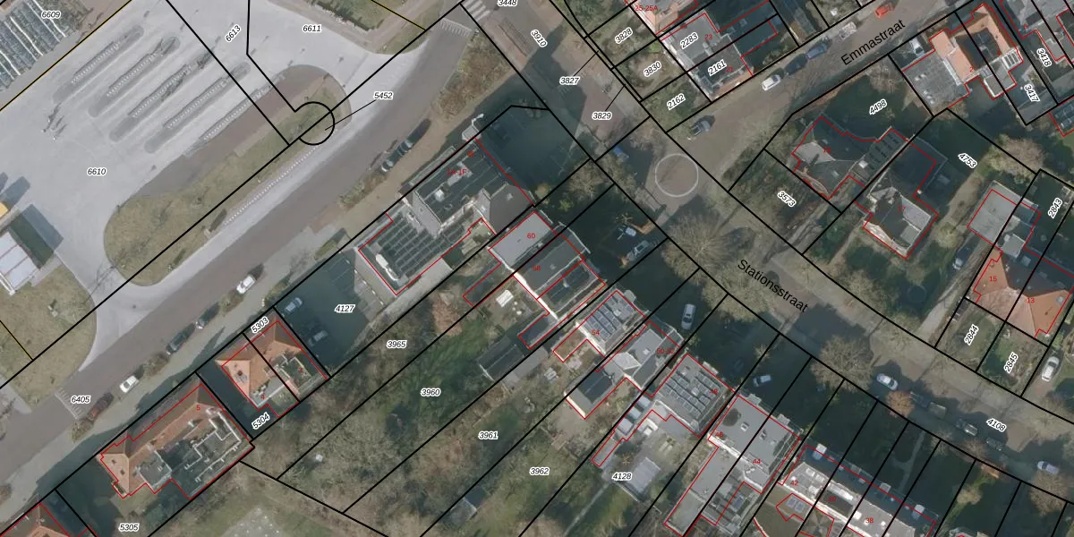 Het perceel waarop Stationsstraat 58 staat heeft een oppervlakte van 1090 m². Dit is een zeer groot perceel. De perceeloppervlakte wordt geregistreerd door het Kadaster. Gedetailleerde informatie over de maten van dit perceel kunt u vinden in het rapport Kadastrale kaart met maatvoering van Stationsstraat 58.