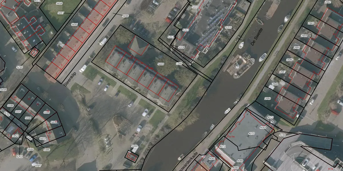 Steenklip 12 is gelegen op kadastraal perceel SNE00A5669. Deze kadastrale aanduiding is uniek en wordt gebruikt door het Kadaster om eigendomsrechten en andere zakelijke rechten vast te leggen. Het perceel maakt onderdeel uit van de kadastrale gemeente Sneek.