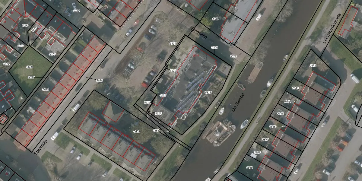 Het perceel waarop het adres ligt is SNE00-A-5315. De afkorting 'SNE00' staat voor kadastrale gemeente Sneek. De gemiddelde perceelgrootte in Sneek is 2093,37 m². Dit perceel is kleiner: de perceeloppervlakte bedraagt 1389 m². Het grootste perceel in de kadastrale gemeente is 61,3 ha. Het kleinste perceel heeft een oppervlakte van 0 m². Er zijn 25 adressen aanwezig op het perceel. In de Basisregistratie Kadaster (BRK) werden de grenzen van het perceel geregistreerd op 15-01-1998.