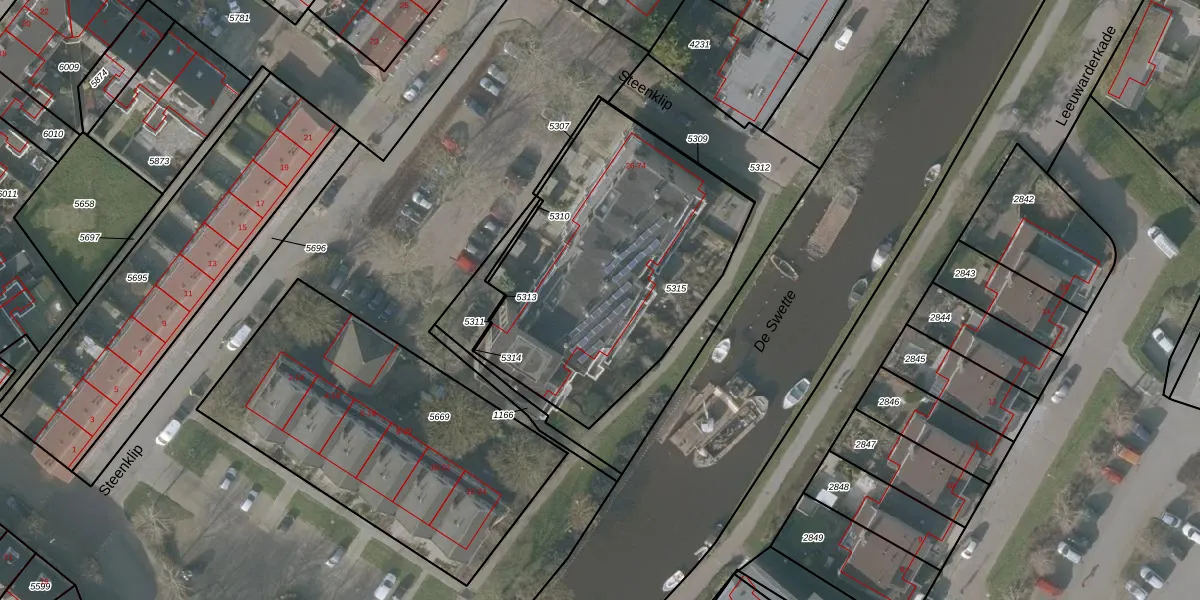 Het perceel waarop het adres ligt is SNE00-A-5315. De afkorting 'SNE00' staat voor kadastrale gemeente Sneek. De gemiddelde perceelgrootte in Sneek is 2093,37 m². Dit perceel is kleiner: de perceeloppervlakte bedraagt 1389 m². Het grootste perceel in de kadastrale gemeente is 61,3 ha. Het kleinste perceel heeft een oppervlakte van 0 m². Op het perceel zijn 25 adressen aanwezig. In de Basisregistratie Kadaster (BRK) werden de grenzen van het perceel geregistreerd op 15-01-1998.