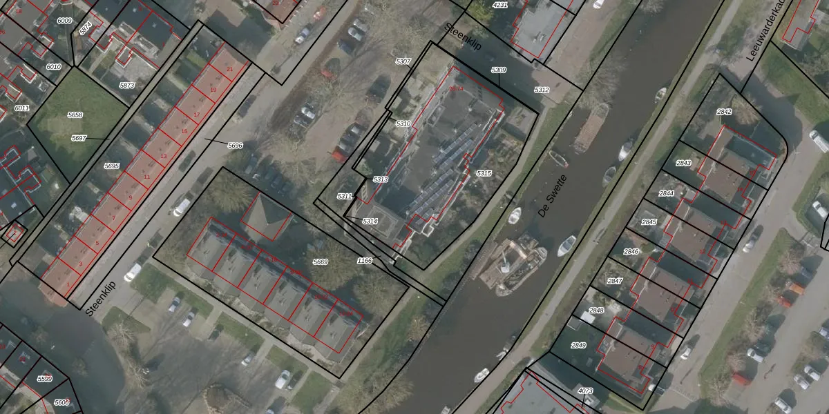 Het perceel waarop het adres ligt is SNE00-A-5315. De afkorting 'SNE00' staat voor kadastrale gemeente Sneek. De gemiddelde perceelgrootte in Sneek is 2093,37 m². Dit perceel is kleiner: de perceeloppervlakte bedraagt 1389 m². Het grootste perceel in de kadastrale gemeente is 61,3 ha. Het kleinste perceel heeft een oppervlakte van 0 m². Op het perceel zijn 25 adressen aanwezig. De laatste wijziging in het de Basisregistratie Kadaster (BRK) was op 15-01-1998.
