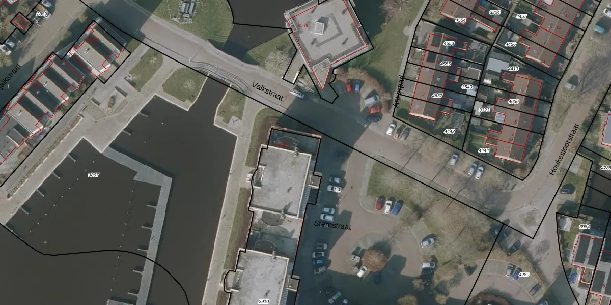 Het adres is gelegen op perceel 2910 in de sectie D en de kadastrale gemeente Sneek. De kadastrale aanduiding is aldus SNE00-D-2910. Het perceel is 2064 m² groot. Dat is kleiner dan de gemiddelde perceeloppervlakte in Sneek, dat op 2093,37 m² ligt. Het grootste perceel in de kadastrale gemeente is 61,3 ha. Het kleinste perceel heeft een oppervlakte van 0 m². Er zijn 54 adressen aanwezig op het perceel. De laatste wijziging in het de Basisregistratie Kadaster (BRK) was op 26-01-2001.