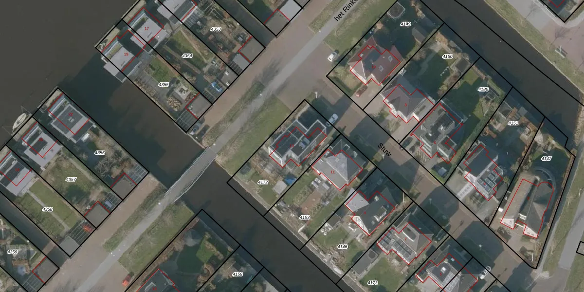 Stuw 13 is gelegen op kadastraal perceel SNE00D4172. Deze kadastrale aanduiding is uniek en wordt gebruikt door het Kadaster om eigendomsrechten en andere zakelijke rechten vast te leggen. Het perceel maakt onderdeel uit van de kadastrale gemeente Sneek.
