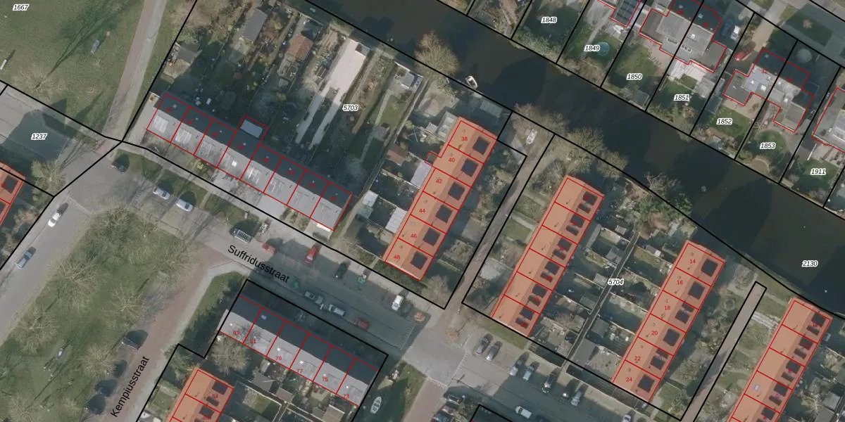 Suffridusstraat 44 is gelegen op kadastraal perceel SNE00A5703. Deze kadastrale aanduiding is uniek en wordt gebruikt door het Kadaster om eigendomsrechten en andere zakelijke rechten vast te leggen. Het perceel maakt onderdeel uit van de kadastrale gemeente Sneek.