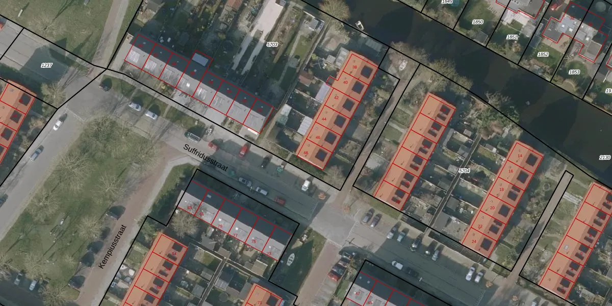 Suffridusstraat 48 is gelegen op kadastraal perceel SNE00A5703. Deze kadastrale aanduiding is uniek en wordt gebruikt door het Kadaster om eigendomsrechten en andere zakelijke rechten vast te leggen. Het perceel maakt onderdeel uit van de kadastrale gemeente Sneek.