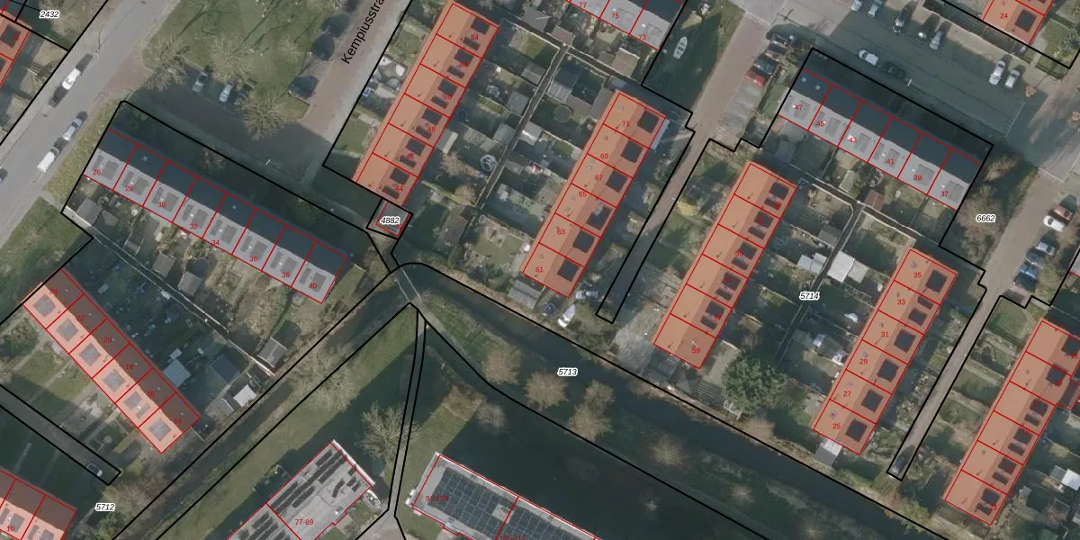 Het perceel waarop het adres ligt is SNE00-A-5714. De afkorting 'SNE00' staat voor kadastrale gemeente Sneek. De gemiddelde perceeloppervlakte in de kadastrale gemeente Sneek is 2093,37 m². Dit perceel is met zijn 1,1 ha dus groter dan gemiddeld. Het kleinste perceel in de kadastrale gemeente is 0 m² groot. De grootste perceeloppervlakte is 61,3 ha. Er zijn 54 adressen aanwezig op het perceel. In de Basisregistratie Kadaster (BRK) werden de grenzen van het perceel geregistreerd op 20-04-2001.