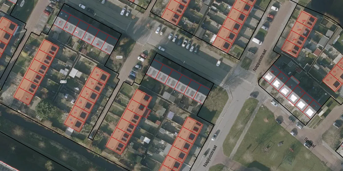 Het perceel waarop het adres ligt is SNE00-A-5714. De afkorting 'SNE00' staat voor kadastrale gemeente Sneek. De gemiddelde perceeloppervlakte in de kadastrale gemeente Sneek is 2093,37 m². Dit perceel is met zijn 1,1 ha dus groter dan gemiddeld. Het grootste perceel in de kadastrale gemeente is 61,3 ha. Het kleinste perceel heeft een oppervlakte van 0 m². Er zijn 54 adressen aanwezig op het perceel. In de Basisregistratie Kadaster (BRK) werden de grenzen van het perceel geregistreerd op 20-04-2001.