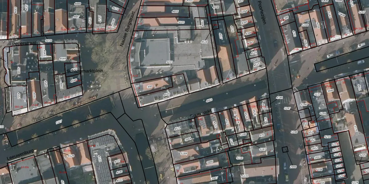 Suupmarkt 9 is gelegen op kadastraal perceel SNE00B4520. Deze kadastrale aanduiding is uniek en wordt gebruikt door het Kadaster om eigendomsrechten en andere zakelijke rechten vast te leggen. Het perceel maakt onderdeel uit van de kadastrale gemeente Sneek.