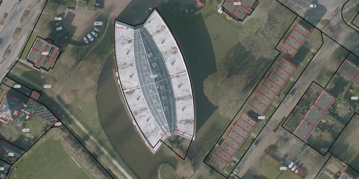 Het adres is gelegen op perceel 3283 in de sectie D en de kadastrale gemeente Sneek. De kadastrale aanduiding is aldus SNE00-D-3283. De oppervlakte van het perceel is 2463 m². Dat is groter dan gemiddeld in Sneek, waar de gemiddelde perceeloppervlakte op 2093,37 m² ligt. Het grootste perceel in de kadastrale gemeente is 61,3 ha. Het kleinste perceel heeft een oppervlakte van 0 m². Er zijn 56 adressen aanwezig op het perceel. In de Basisregistratie Kadaster (BRK) werden de grenzen van het perceel geregistreerd op 15-01-1998.