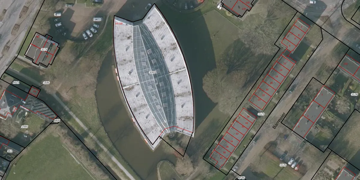 Het adres is gelegen op perceel 3283 in de sectie D en de kadastrale gemeente Sneek. De kadastrale aanduiding is aldus SNE00-D-3283. De oppervlakte van het perceel is 2463 m². Dat is groter dan gemiddeld in Sneek, waar de gemiddelde perceeloppervlakte op 2093,37 m² ligt. Het grootste perceel in de kadastrale gemeente is 61,3 ha. Het kleinste perceel heeft een oppervlakte van 0 m². Er zijn 56 adressen aanwezig op het perceel. De huidige grenzen van het perceel zijn digitaal in de Basisregistratie Kadaster (BRK) geregistreerd op 15-01-1998.
