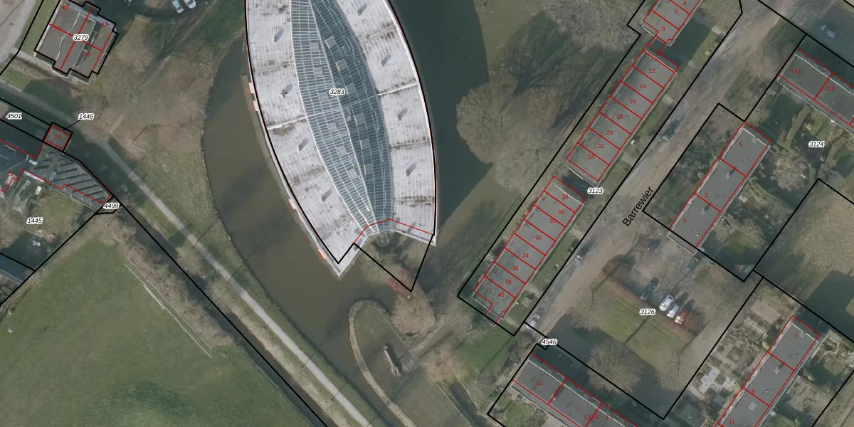 Het adres is gelegen op perceel 3283 in de sectie D en de kadastrale gemeente Sneek. De kadastrale aanduiding is aldus SNE00-D-3283. De oppervlakte van het perceel is 2463 m². Dat is groter dan gemiddeld in Sneek, waar de gemiddelde perceeloppervlakte op 2093,37 m² ligt. Het grootste perceel in de kadastrale gemeente is 61,3 ha. Het kleinste perceel heeft een oppervlakte van 0 m². Op het perceel zijn 56 adressen aanwezig. In de Basisregistratie Kadaster (BRK) werden de grenzen van het perceel geregistreerd op 15-01-1998.