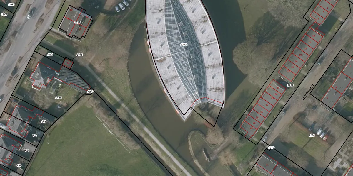 Het adres is gelegen op perceel 3283 in de sectie D en de kadastrale gemeente Sneek. De kadastrale aanduiding is aldus SNE00-D-3283. De oppervlakte van het perceel is 2463 m². Dat is groter dan gemiddeld in Sneek, waar de gemiddelde perceeloppervlakte op 2093,37 m² ligt. Het grootste perceel in de kadastrale gemeente is 61,3 ha. Het kleinste perceel heeft een oppervlakte van 0 m². Op het perceel liggen in totaal 56 adressen. In de Basisregistratie Kadaster (BRK) werden de grenzen van het perceel geregistreerd op 15-01-1998.