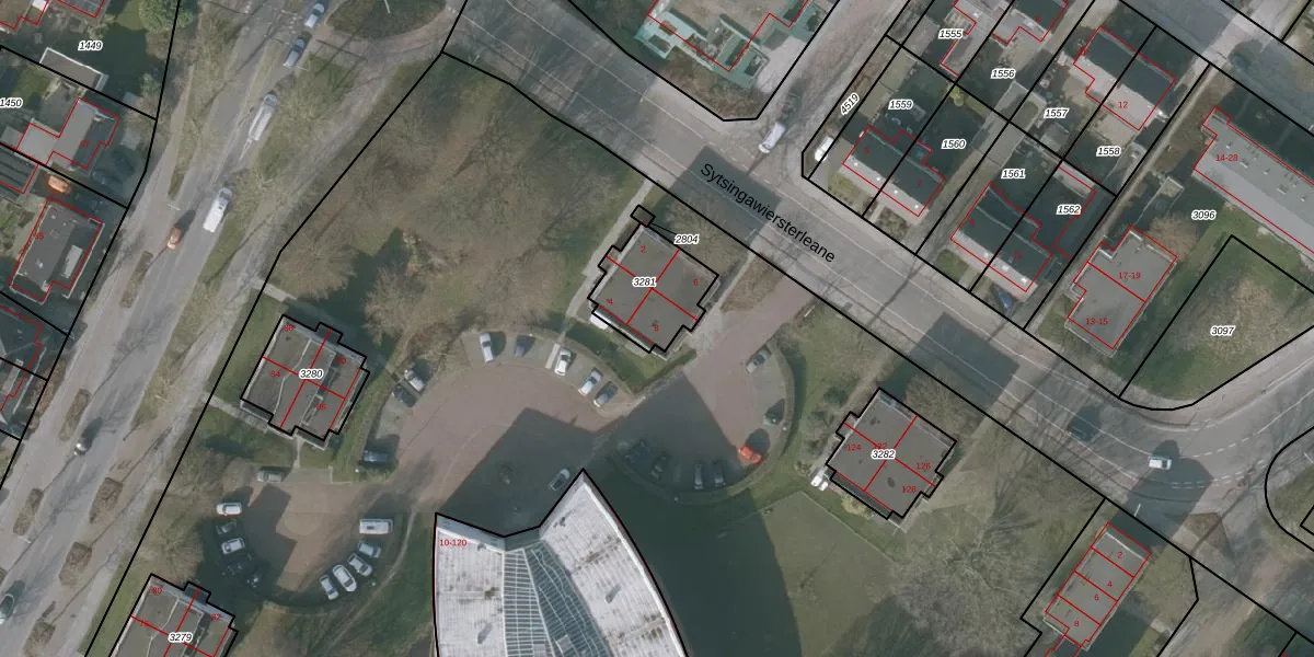 Sytsingawiersterleane 8 is gelegen op kadastraal perceel SNE00D3281. Deze kadastrale aanduiding is uniek en wordt gebruikt door het Kadaster om eigendomsrechten en andere zakelijke rechten vast te leggen. Het perceel maakt onderdeel uit van de kadastrale gemeente Sneek.
