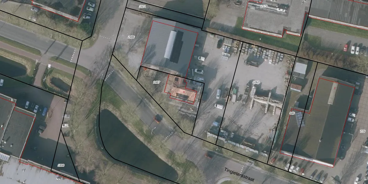 Tingietersstraat 4 is gelegen op kadastraal perceel SNE00E2487. Deze kadastrale aanduiding is uniek en wordt gebruikt door het Kadaster om eigendomsrechten en andere zakelijke rechten vast te leggen. Het perceel maakt onderdeel uit van de kadastrale gemeente Sneek.