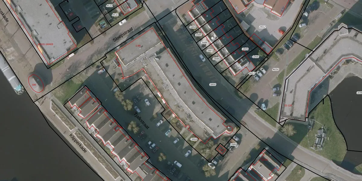 Tjalkstraat 59 is gelegen op kadastraal perceel SNE00D3868. Deze kadastrale aanduiding is uniek en wordt gebruikt door het Kadaster om eigendomsrechten en andere zakelijke rechten vast te leggen. Het perceel maakt onderdeel uit van de kadastrale gemeente Sneek.