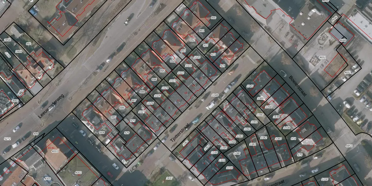 Tjotterstraat 13 is gelegen op kadastraal perceel SNE00D1023. Deze kadastrale aanduiding is uniek en wordt gebruikt door het Kadaster om eigendomsrechten en andere zakelijke rechten vast te leggen. Het perceel maakt onderdeel uit van de kadastrale gemeente Sneek.